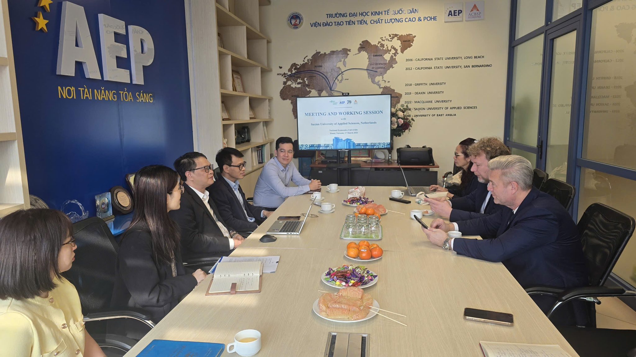 Trong khuôn khổ Global Week 2026, AEP vinh dự chào đón đại diện từ nhiều trường đại học đối tác quốc tế uy tín. Đặc biệt, sự tham gia của Saxion University of Applied Sciences – đối tác mở màn cho chuỗi hoạt động năm nay – đã mang đến những thông tin giá trị về chương trình đào tạo và cơ hội chuyển tiếp quốc tế dành cho sinh viên AEP.