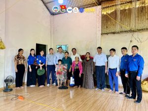 Sau buổi giao lưu thân mật tại Nhà văn hóa, Đoàn tình nguyện tới thăm và mang chút nhu yếu phẩm phục vụ đời sống dành cho các hộ gia đình có hoàn cảnh khó khăn tại địa phương.