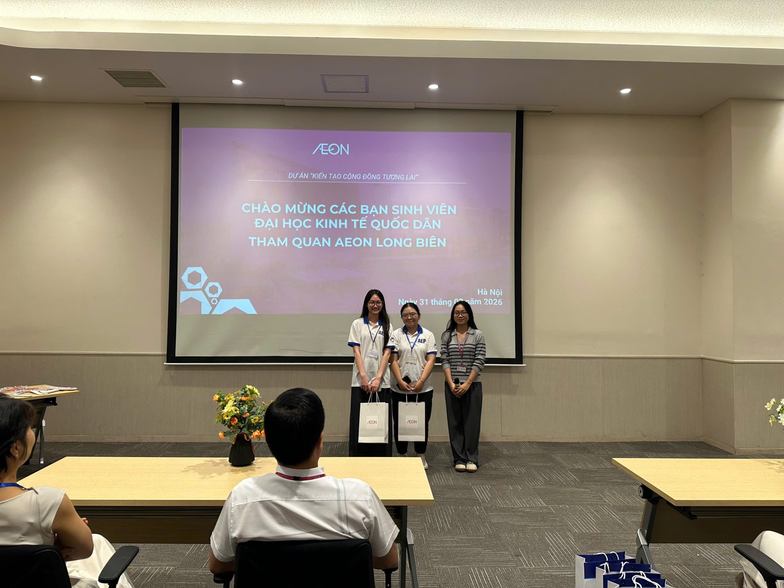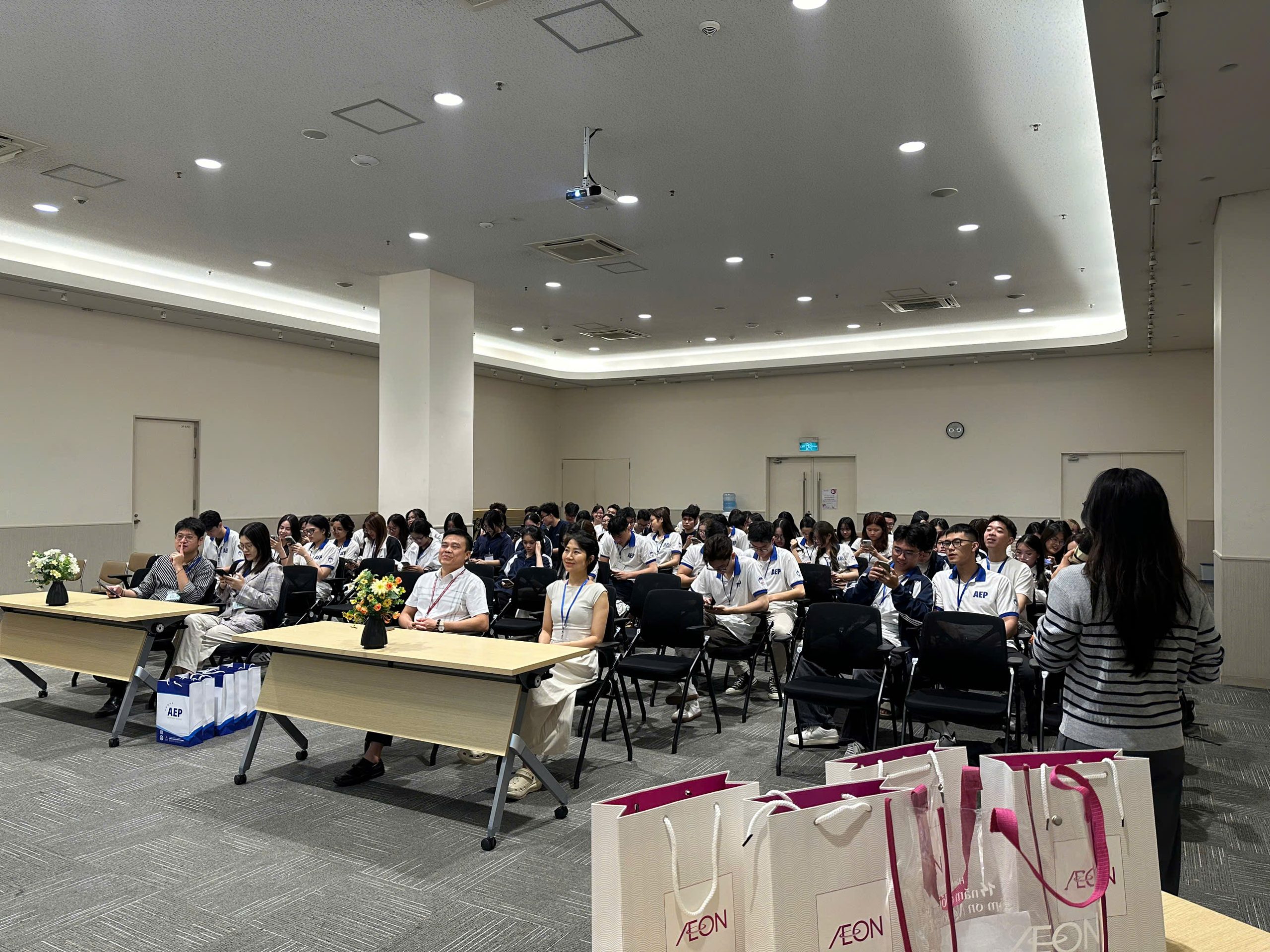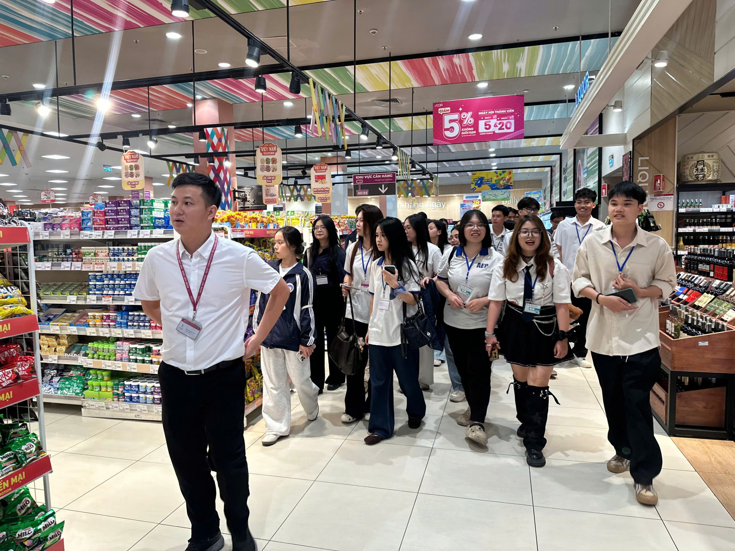 Tại buổi làm việc, đại diện doanh nghiệp đã giới thiệu tổng quan về Tập đoàn AEON, quá trình phát triển tại thị trường Việt Nam cũng như mô hình vận hành của trung tâm thương mại theo tiêu chuẩn quốc tế. Những chia sẻ xoay quanh chiến lược kinh doanh, tổ chức hệ thống bán lẻ, quản trị vận hành và nâng cao trải nghiệm khách hàng đã mang đến cho sinh viên cái nhìn thực tế và toàn diện về hoạt động của một doanh nghiệp FDI trong lĩnh vực thương mại – dịch vụ.