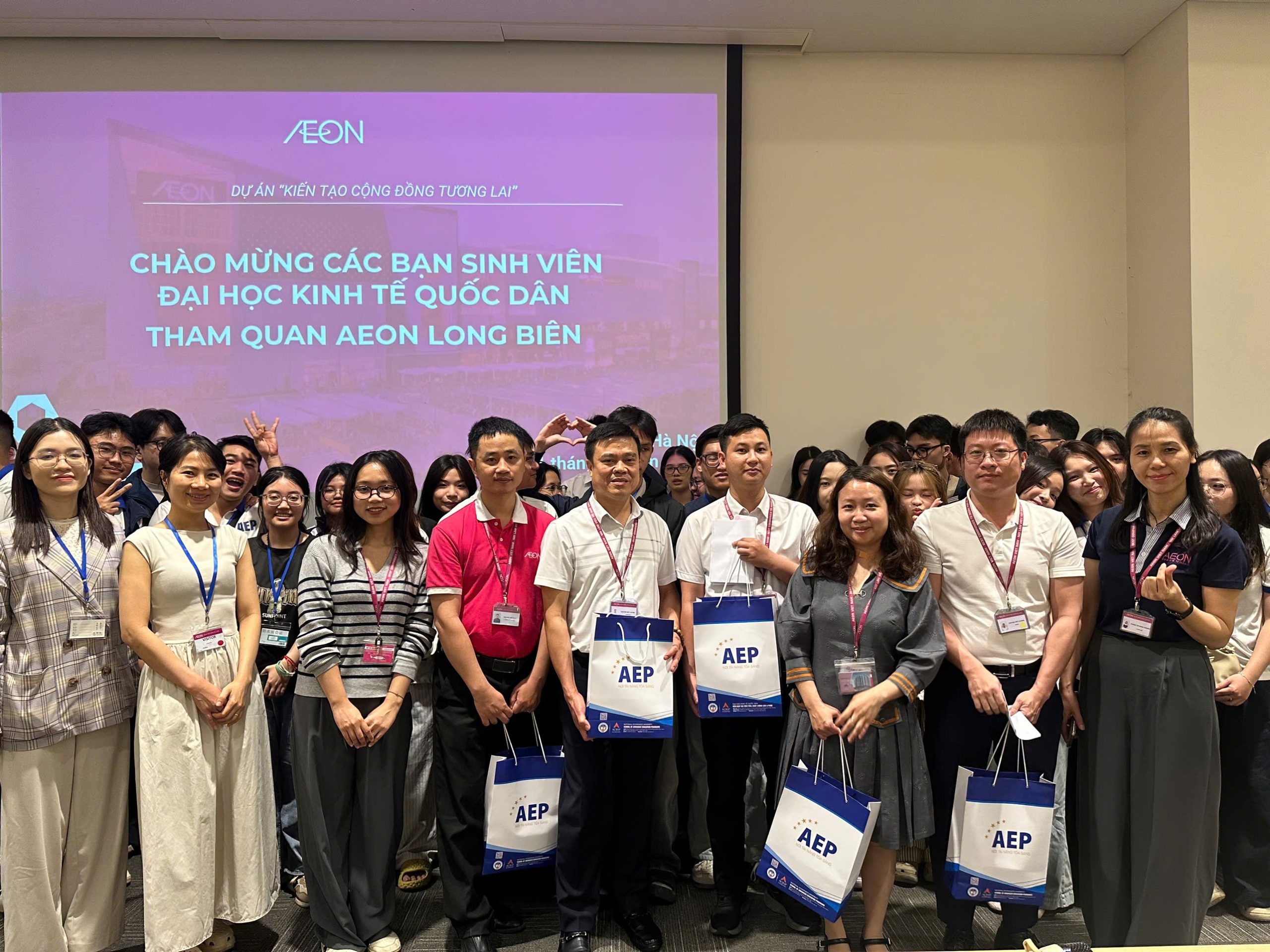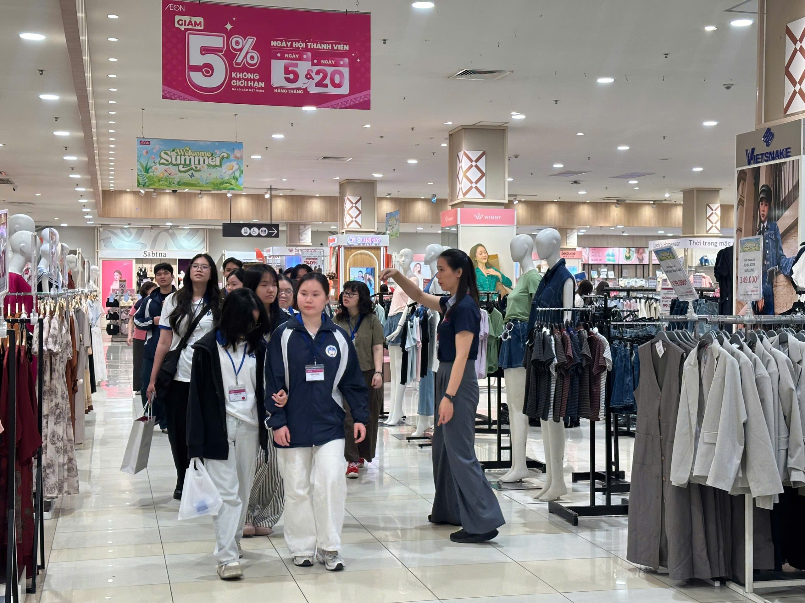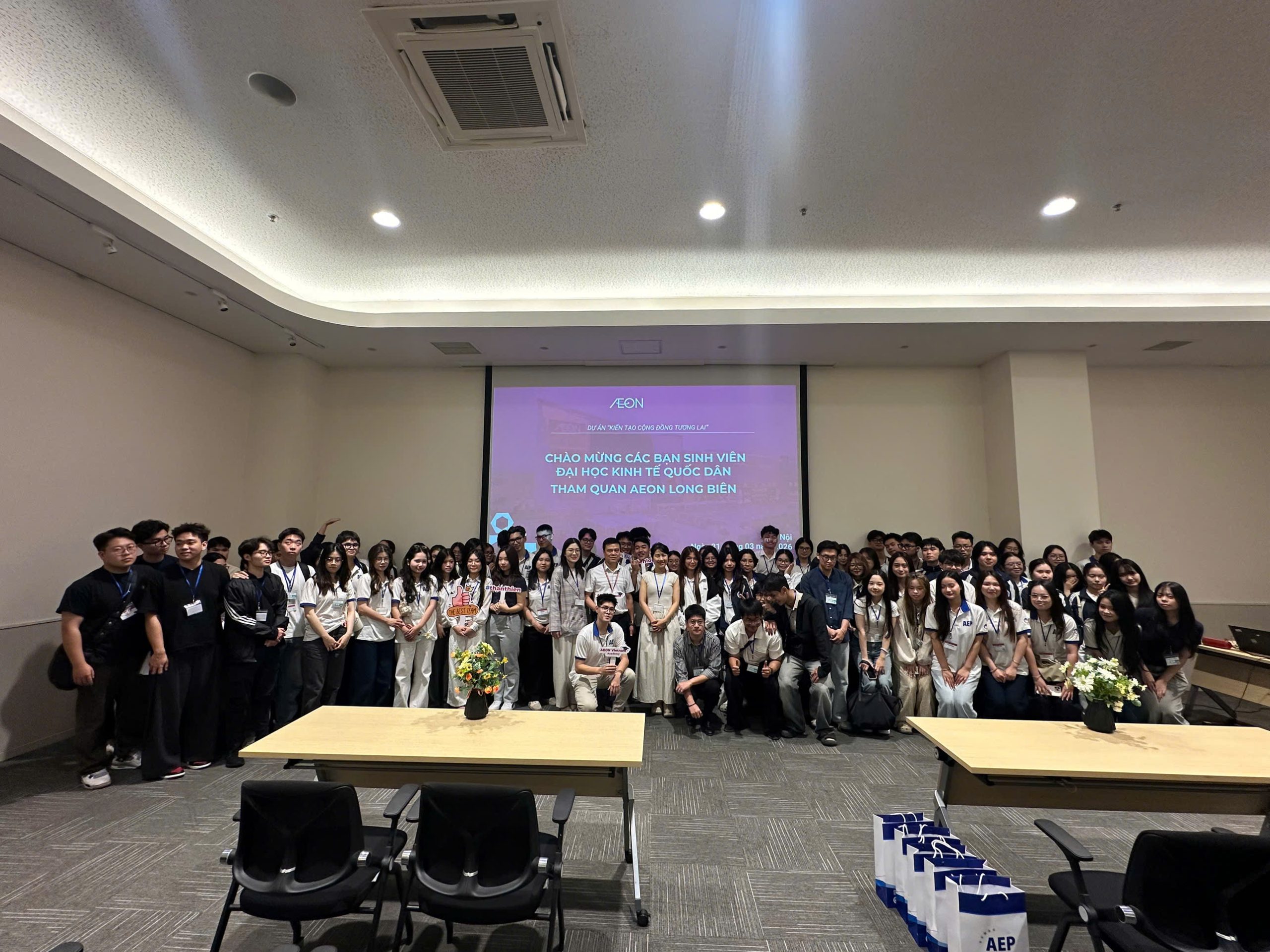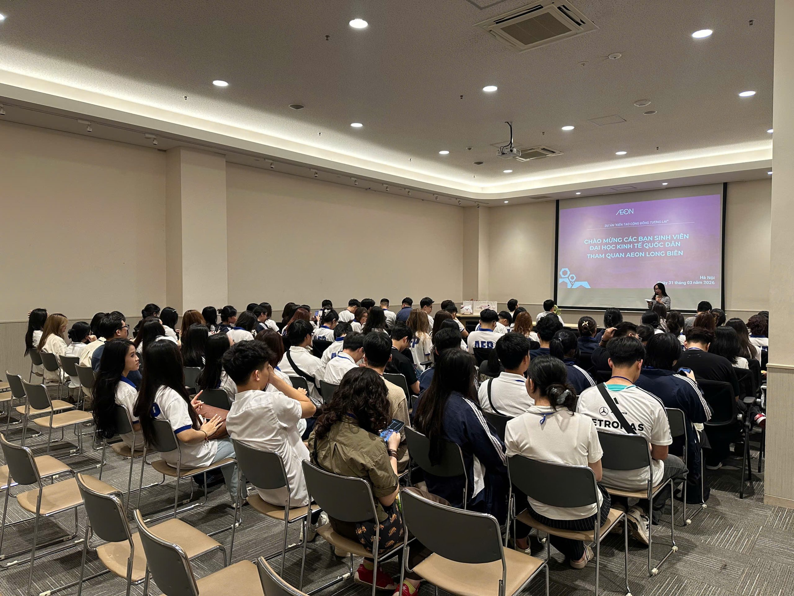 Ngày 31/3, sinh viên chương trình Kinh tế Quốc tế thuộc Viện Đào tạo Tiên tiến, Chất lượng cao và POHE, Đại học Kinh tế Quốc dân đã tham gia chương trình tham quan, học tập thực tế tại AEON Mall Long Biên. Đây là hoạt động nằm trong kế hoạch đào tạo nhằm tăng cường trải nghiệm thực tiễn, giúp sinh viên gắn kết kiến thức học thuật với môi trường doanh nghiệp hiện đại.