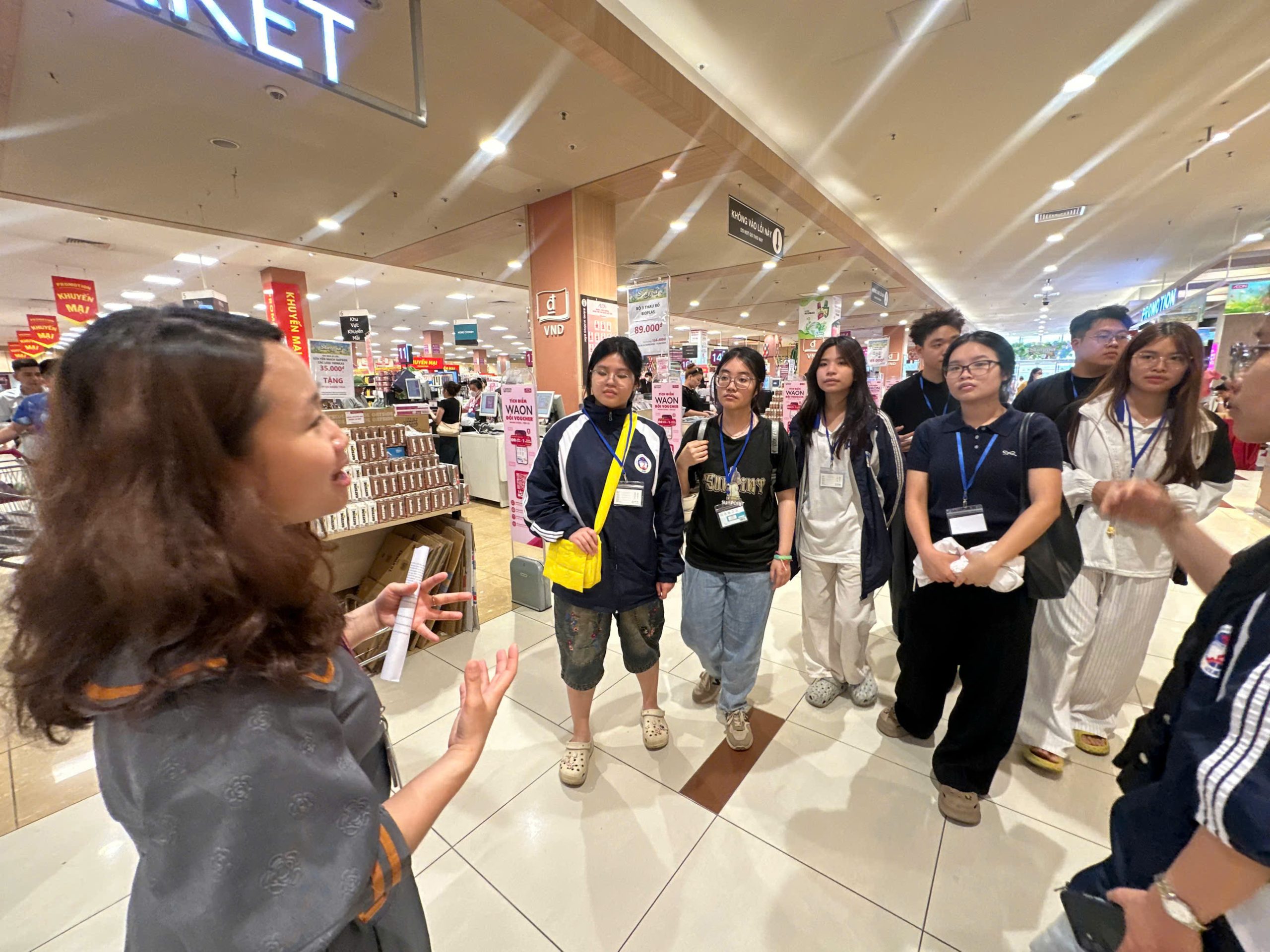 Trong khuôn khổ chương trình, sinh viên đã trực tiếp tham quan các khu vực chức năng của trung tâm thương mại như khu bán lẻ, khu ẩm thực và khu vui chơi giải trí. Thông qua hoạt động này, các bạn có cơ hội quan sát thực tế quy trình vận hành, cách thức bố trí không gian thương mại, cũng như tìm hiểu về quản trị chuỗi cung ứng, kiểm soát chi phí và hoạt động marketing trong môi trường cạnh tranh cao.